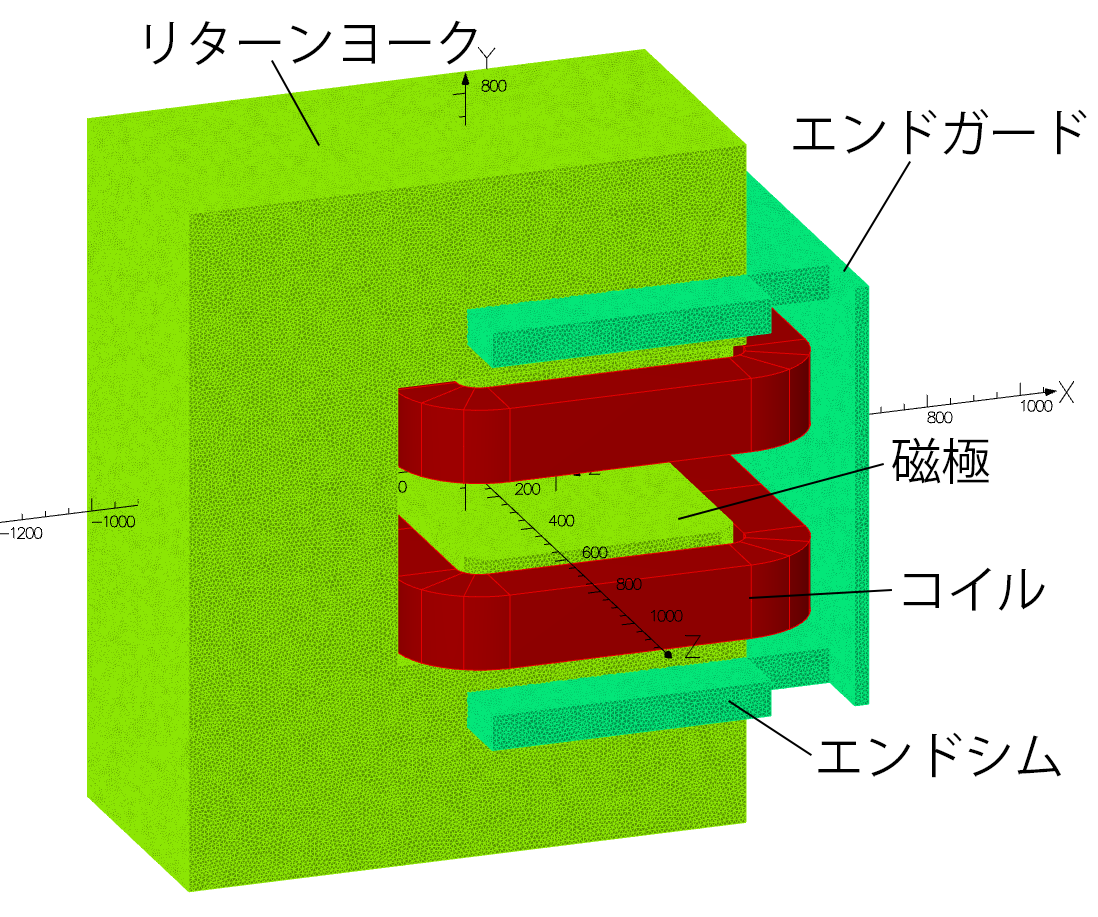 図2. OPERA-3dを用いて製作したDB2の磁場解析モデル
