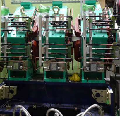 偏向電磁石のコイル換装 崩壊ミュオンビームライン(Dライン)に設置されている偏向電磁石(DB2)は製造から40年以上経過した電磁石であり、有機絶縁体の含まれるコイルの経年劣化が懸念事項であったため、新コイルへの交換を行うことにした。また、将来的に120MeV/c以上の高運動量ミュオンを用いた実験の需要が生じた場合にも対応できるように、新コイルには冷却水路数を増設(図3)することによって冷却能力を向上させ、大電流を伴う運用が可能となる高度化が行われた。新コイル交換後に磁場測定を行い、コイル換装前後で磁場の相違が無いことを確認した(図4)。